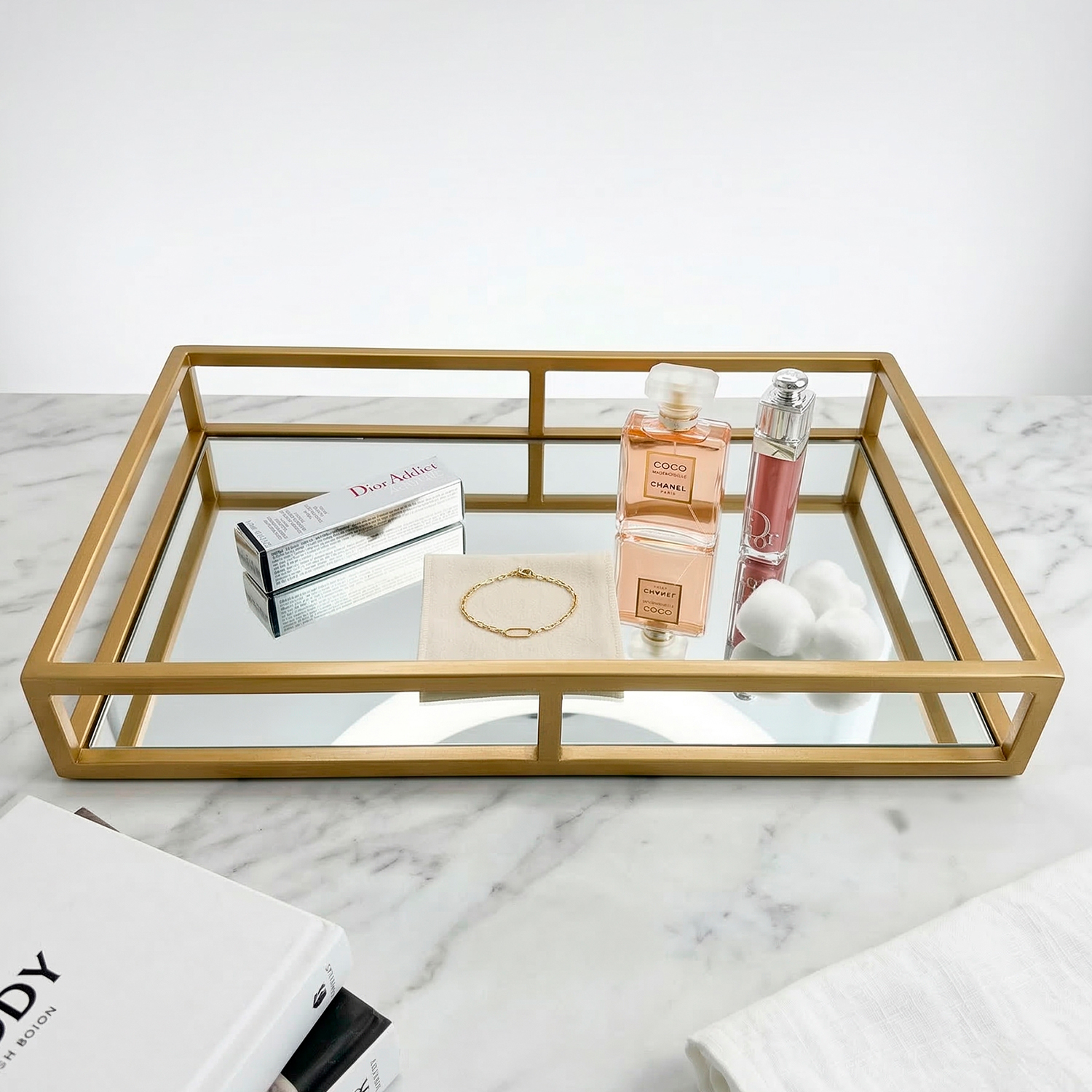A Bandeja Metal Decorativa Charme foi criada para trazer elegância e sofisticação à decoração. Seu design minimalista combina perfeitamente com mesas de centro, bancadas, aparadores ou penteadeiras, organizando objetos de forma prática e elegante.