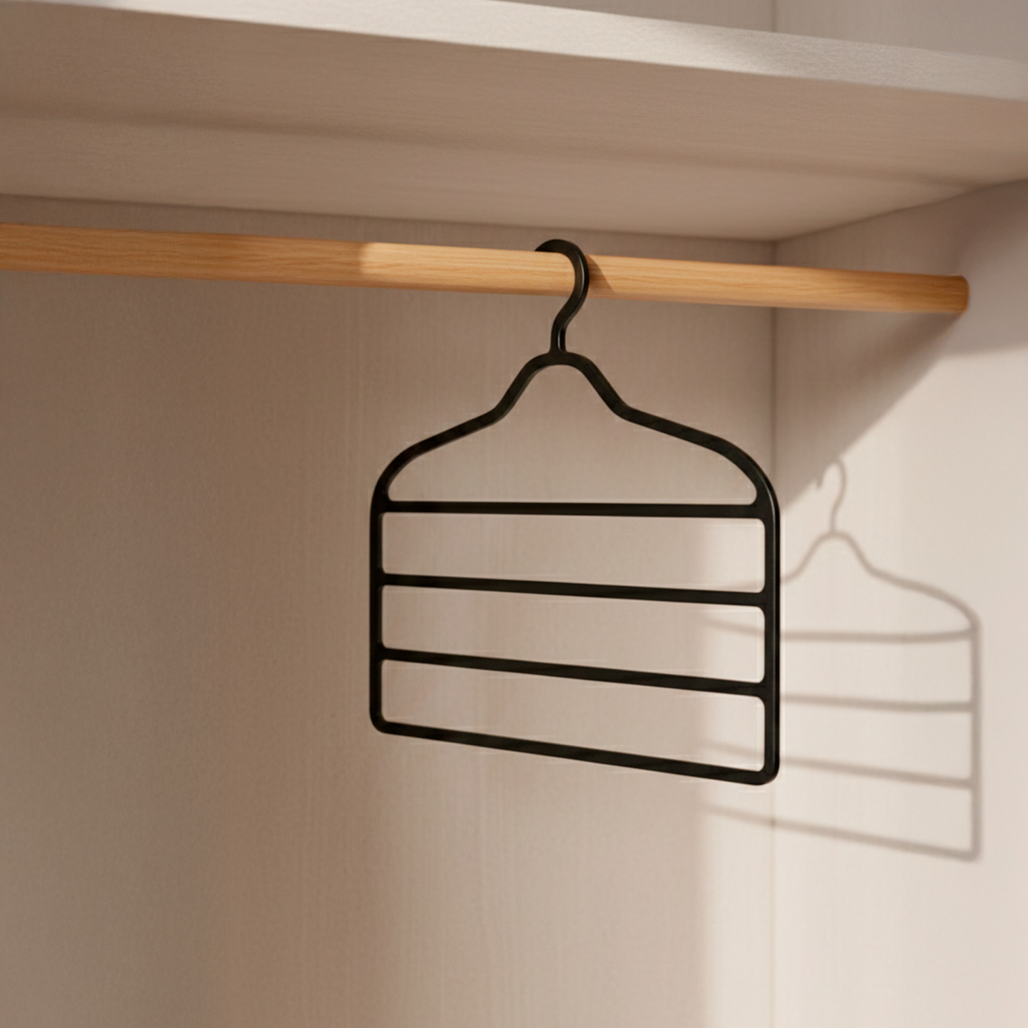 Ideal para organizar calças, o modelo permite manter as peças alinhadas, evitando amassados e facilitando a visualização no armário. Uma solução simples e eficiente para quem valoriza organização e funcionalidade no dia a dia.