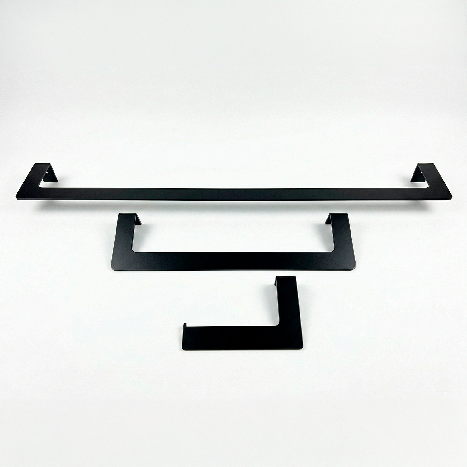 O kit é composto por suporte para toalha de banho, suporte para toalha de rosto e papeleira, proporcionando praticidade no dia a dia e mantendo todos os itens essenciais sempre ao alcance. Uma solução completa para quem busca funcionalidade aliada a um design limpo e moderno.
