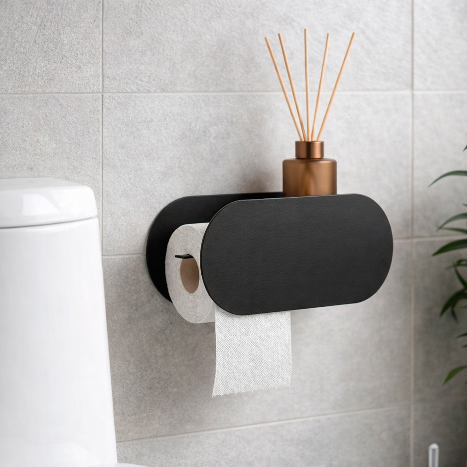 O Suporte de Papel Higiênico com Apoio para Difusor de Aromas 1002 foi desenvolvido para unir praticidade e elegância no ambiente. Com design contemporâneo e linhas minimalistas, a peça organiza o espaço enquanto adiciona um toque moderno à decoração do banheiro.