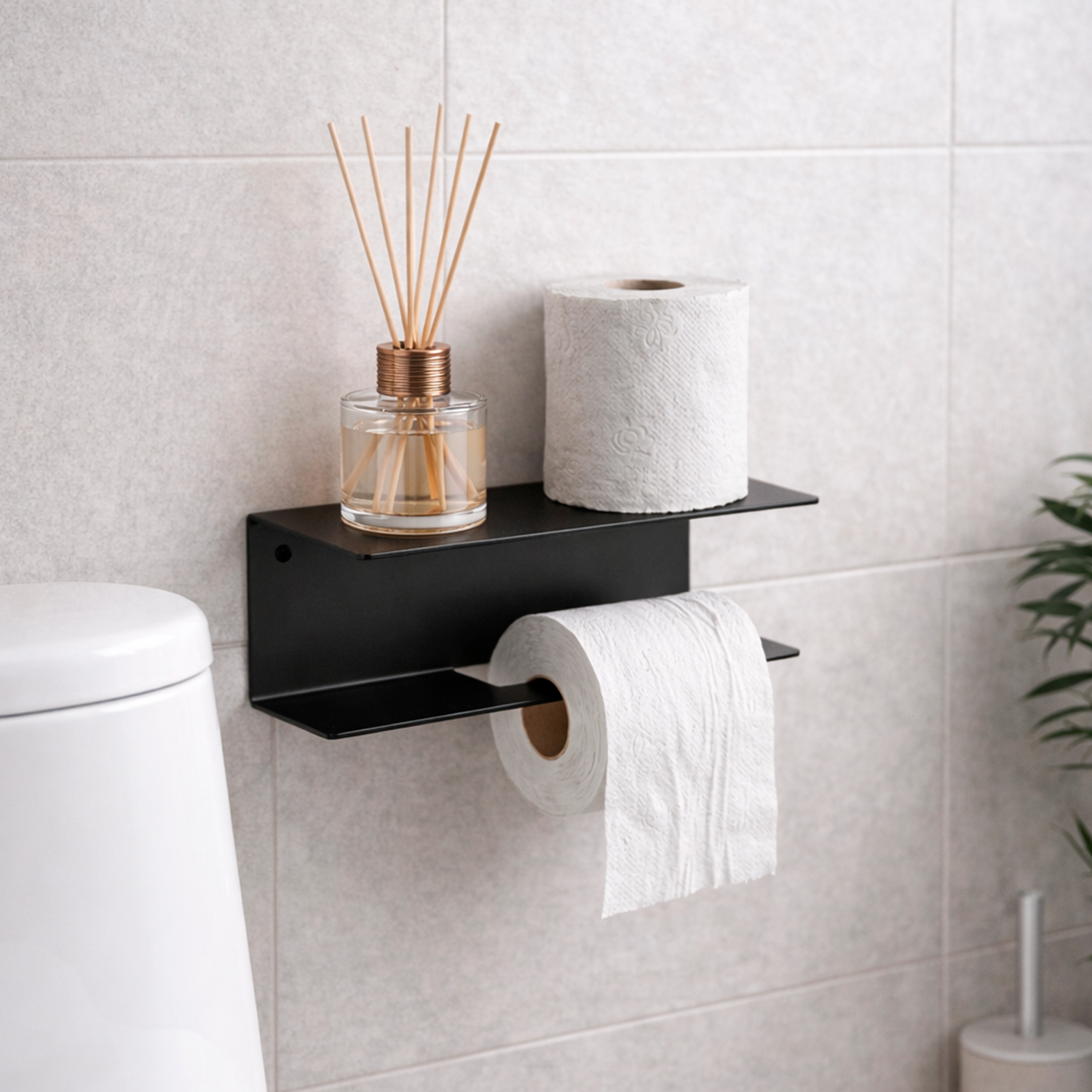 O Suporte de Papel Higiênico com Apoio para Difusor de Aromas 1001 foi desenvolvido para trazer praticidade e sofisticação ao ambiente, combinando organização e um toque decorativo em uma única peça. Seu design contemporâneo e linhas suaves valorizam o espaço, tornando o banheiro mais funcional e elegante.